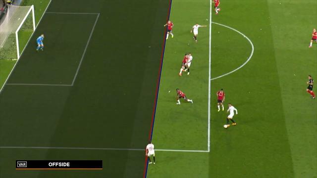 第40分钟,卡塞米罗后场传球被拦截,安奈西里分给套边的阿库尼亚,阿库尼亚左路传中,奥坎波斯禁区内推射破门,但VAR发现阿库尼亚接球时越位在先,进球无效。